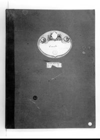 ISCRIZIONI: Nel piatto superiore, in alto a sinistra, manoscritta a lapis, all’interno di un cerchio:”46”.CARTELLINI: Nel piatto superiore al centro è stato incollato il cartellino stampato "COLLEZIONE ARTISTICA BARTOLINI/catalogo/Num. progress. 188 /Sez. […] N. 27 "; Nel piatto superiore al centro, è stato incolato un cartellino decorato con volute e protome leonina, con all’interno manoscritta a lapis e penna e inchiostro: “Ornati/e decorazioni di G. Albertolli”.