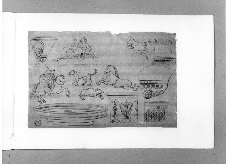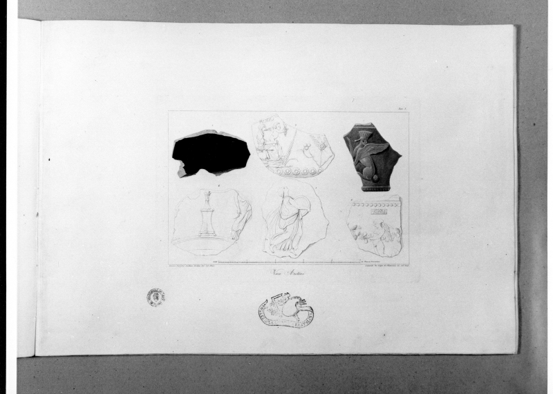 All'interno della collezione si conserva un altro esemplare completo della serie di 9 stampe "Vasi Aretini" inv. n. 2463 (scheda n. 3686).