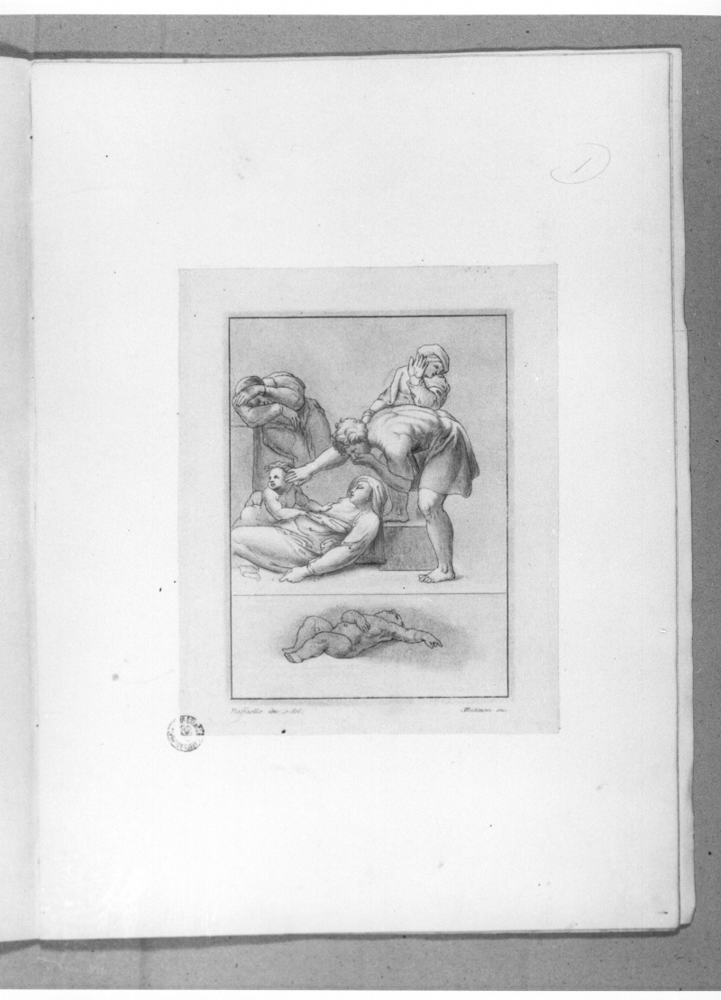 CONTIENE: 10 incisioni ad acquaforte ed acquatinta di S. Mulinari da Raffaello (cc. 1-4;9-10) e S. Pacini da Cigoli, Santi di Tito e Pontormo (cc. 5-8). Le stampe sono state tutte interamente tagliate ed incollate a finestra al verso lungo i margini ad eccezione delle stampe (cc. 5-6) che sono state tirate direttamente sulla pagina.