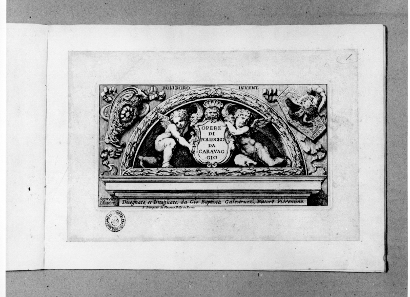 (cc. 1-5, 9-14): n. 11 stampe (Lastra: 111x155; 116x161) della serie “Opere di Polidoro da Caravaggio” (Roma, 1658), che riproducono i fregi affrescati da Polidoro da Caravaggio sulle facciate esterne di palazzo Milesi in via della Maschera d'Oro a Roma; successivamente le stampe (cc. 5, 9-12) sono state inserite nel volume "Raccolta di vasi diversi formati da illustri artefici antichi, e di varie targhe sovrapposte alla fabbriche più insigni di Roma" pubblicato a Roma nel 1713 da Domenico De Rossi.