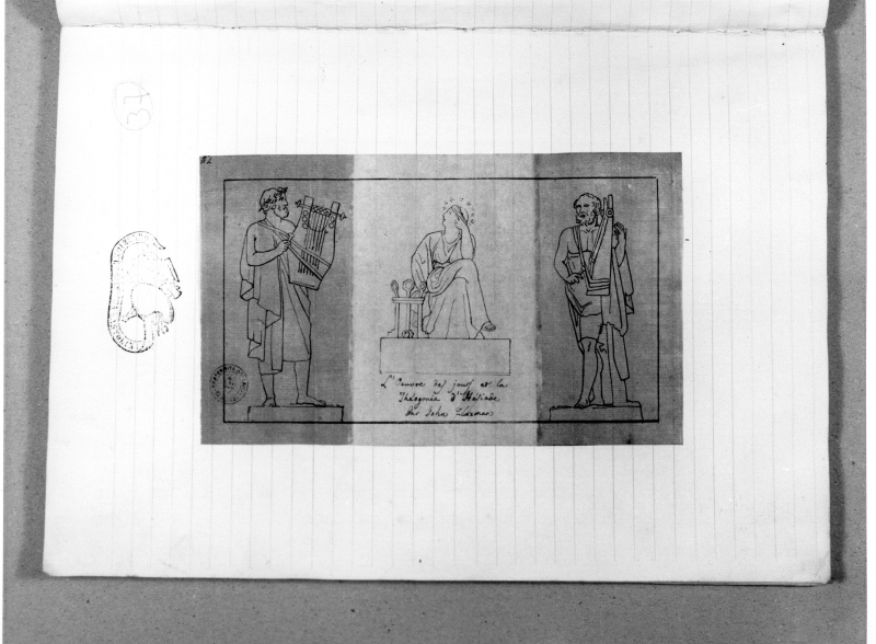 36 studi a penna e inchiostro su carta trasparente (carta lucida trattata) da “le Giornate e la Teogonia d'Esiodo” di Flaxman. I disegni sono interamente incollati alle pagine; presentano una numerazione progressiva in alto a sinistra (1-36) e delle iscrizioni riguardanti i soggetti in basso al centro.