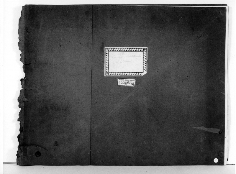 CARTELLINI: Nel piatto superiore al centro è stato incollato il cartellino stampato "COLLEZIONE ARTISTICA BARTOLINI/catalogo/Num. Progress. […] sez.. […]”; Nel piatto superiore al centro è stato incollato un cartellino profilato da cornice geometrica blu, all’interno la seguente scritta, manoscritta a lapis: “N° 5/Composizioni Architettoniche/del Bibbiena”; Nel piatto superiore in basso a destra, è stato incollato un cartellino circolare stampato "4i”, al di sopra la seguente iscrizione, manoscritta a lapis: “Scat./T”.