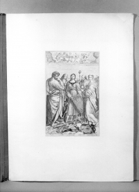 Tav. 2: incisione a bulino ritagliata entro i margini (404x267) ed interamente incollata sulla pagina (c.2), raffigurante la Sacra Famiglia da Raffaello incisa dal monogrammista SR.