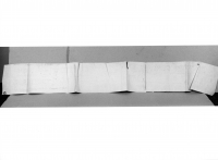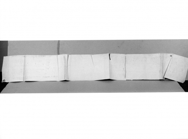 Il foglio si compone di tre fogli giuntati longitudinalmente attraverso una cucitura col filo nero. - Timbri