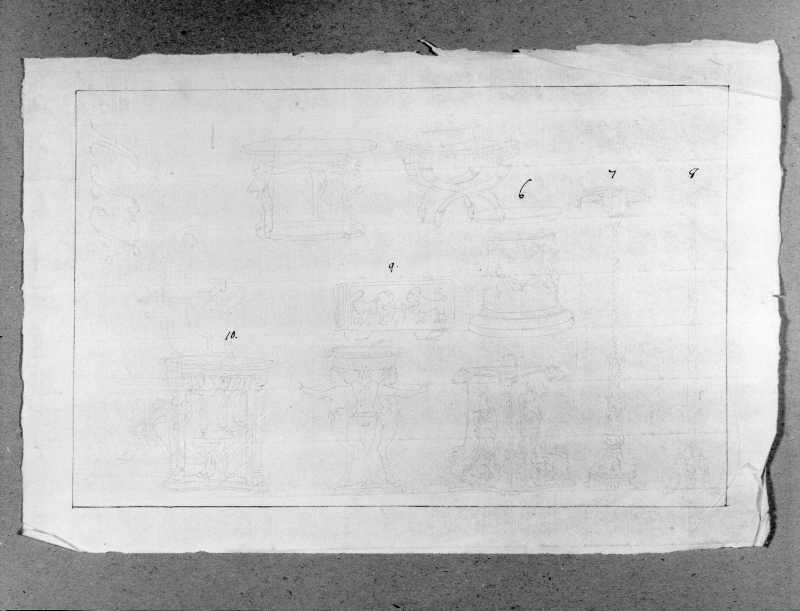 - Dieci schizzi di oggetti d'arredo di gusto antico.