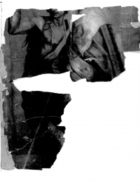 La composizione è stata realizzata all'interno di uno spazio profilato a penna e inchiostro; e costruito geometricamente a matita nera.In basso a destra, al di sopra dell'iscrizione "Repanaj" è stata inserita una striscia di carta nera lucida, fissata ai bordi con della cera lacca rossa. - Timbri