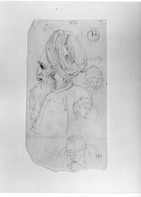 - Due studi di teste femminili e due di uomini barbuti con turbante.