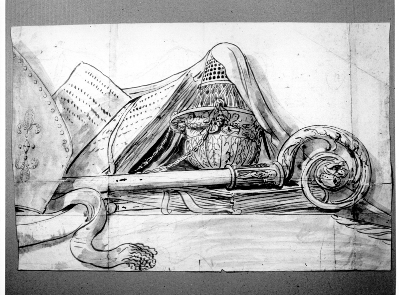 - All'interno del disegno è rappresentata una tiara,un pastorale,un turibolo e dei libri.