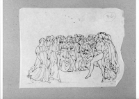Gruppo numeroso di figure e due danzanti a sinistra.