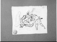 - Misure: 119 x 152. Nel verso, sono presenti alcuni schizzi; alcuni eseguiti a penna e inchiostro e altri a matita nera.