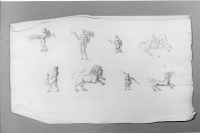 - Otto studi di figure e animali dall'antico: un putto, una figura di giovane con la cornucopia, una matrona con ramoscello, un cavallo alato, un nudo maschile con elmo e spada, un leone, un soldato con la lancia, un ariete/caprone.