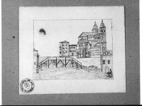 Paesaggio con marina, ponte e chiesa con due torrette (Venezia?).