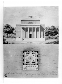 - Iscrizioni: Nel margine inferiore, manoscritta a penna e inchiostro:" Scala di B. cia Fio. 20"; in basso al centro, manoscritta a penna e inchiostro,"Progetto di un Bagno per un Signore Particolare"; lungo il margine inferiore a destra, manosritta a matita di grafite:"163/32";lungo il margine inferiore a destra, manosritta a matita di grafite, all'interno di un cerchio:"13"; al centro, manoscritta a penna e inchiostro:"Prospetto/Pianta".