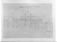 - Nel foglio è disegnata la facciata, pianta e prospetto della chiesa di S. M. delle Querce a Lucignano.