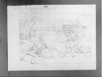 - Schizzo quadrettatto con scena di storia antica in un paesaggio.