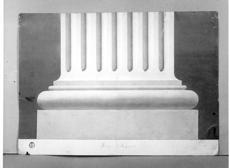- Iscrizioni: nel margine inferiore, al centro manoscritta, a penna e inchiostro: "Saggio d'Acquerello"; nel margine inferiore a sinistra, manoscritta a penna e inchiostro: "Aprile 1877"; nel margine inferiore, all' estrema destra manoscritta, a penna e inchiostro: "Paolina Salvini"; in basso a destra, manoscritta, a penna e inchiostro: "Visto E. Prof. Biascardi"; in basso a destra, manoscritta, a matita nera all'interno di un cerchio: "6".
