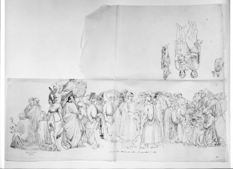 - Studio con lunga teoria di personaggi, copiati da dipinti del Trecento.