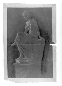 - Studio da statua di figura femminile seduta di tre quarti verso sinistra.