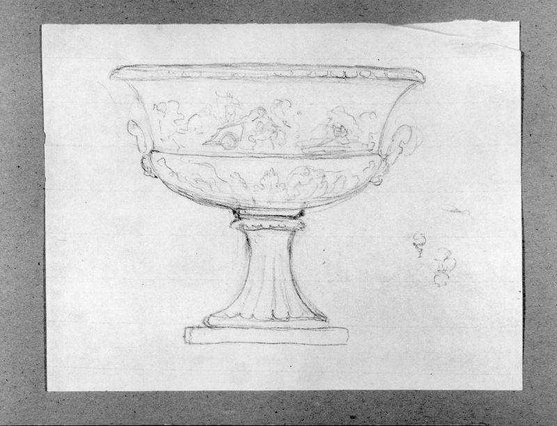 - Studio di coppa a rilievo con piede a fusto e due piccoli studi di anse (?).