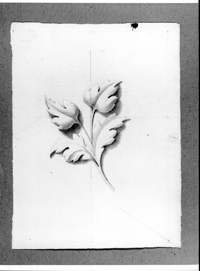 - Iscrizioni: nel recto a destra, manoscritta a matita nera entro un cerchio: "336".Il disegno è stato realizzato da un allievo dell' Accademia di Disegno verso il 1851.