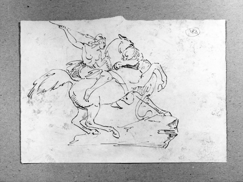 Studio di lotta tra cavaliere e leone.