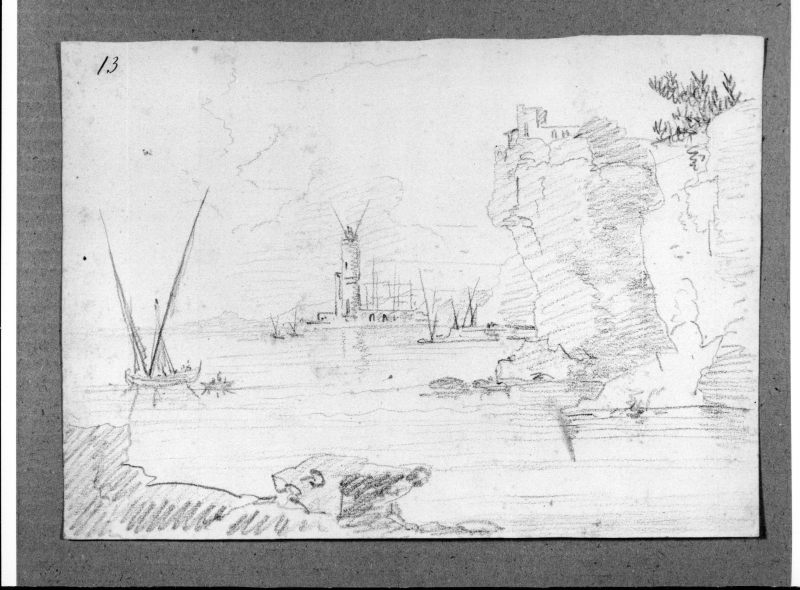 - Iscrizioni: in alto a sinistra, manoscritta a penna e inchiostro: "13"; nel verso, in basso a destra, manoscritta amatita nera, all'interno di un cerchio: "101".