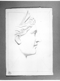 - Studio di testa femminile con diameda di profilo.