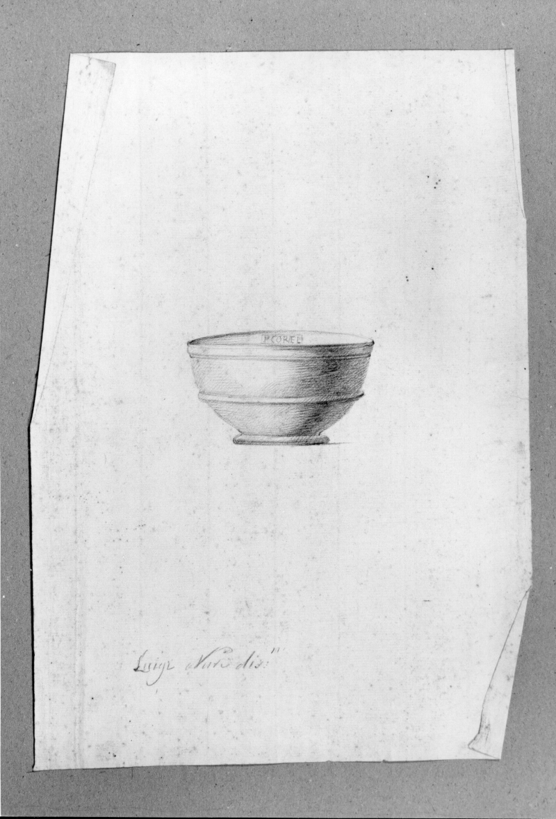 - Iscrizioni: Sul bordo interno del vaso, manoscritta a matita nera "PCORAEL";