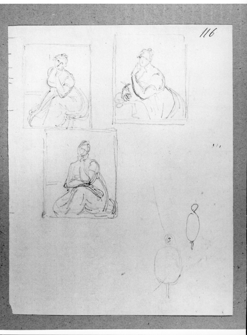 - Iscrizioni: in alto a detra, manoscritta a penna e inchiostro:"116"; nel verso, in basso a destra, manoscritta a matita nera all'interno di un cerchio:"105".