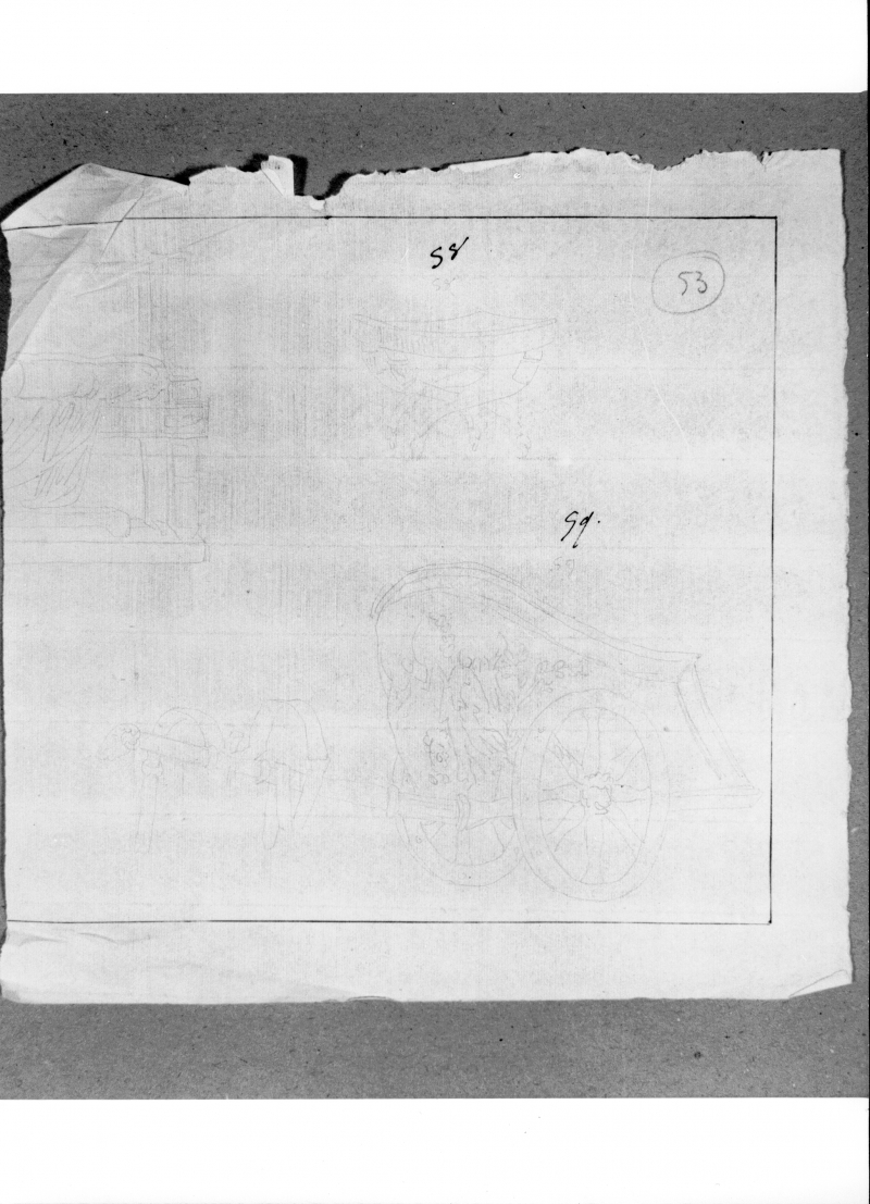 Uno studio di biga romana decorata, una sedia e altri schizzi.