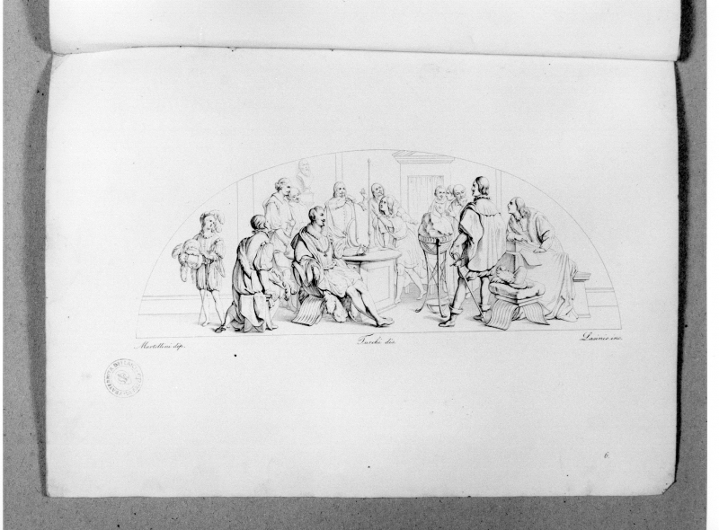 Tav. VI: stampa all’acquaforte (smarginata) da Lasinio Figlio, raffigurante un affresco da L. Sabatelli con Galileo alla presenza del Doge.