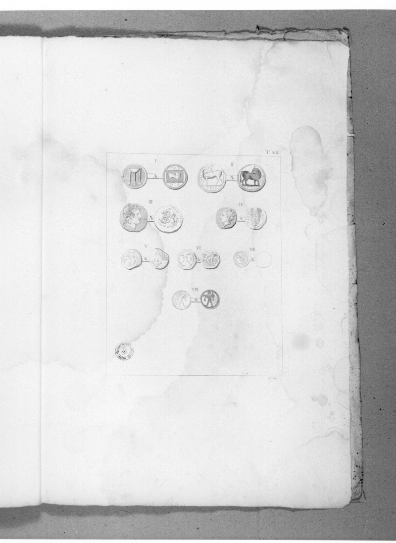 CONTIENE: Esemplare frammentario della pubblicazione a stampa “Antichi monumenti per servire all’opera intitolata l’Italia avanti il dominio dei Romani”, G. Micali, Firenze, 1810: 43 tavole(tirate direttamente sulla pagina, con margine), incise all’acquaforte su rame e numerate nell’inciso, in alto a destra (T. XVIII-LIX).