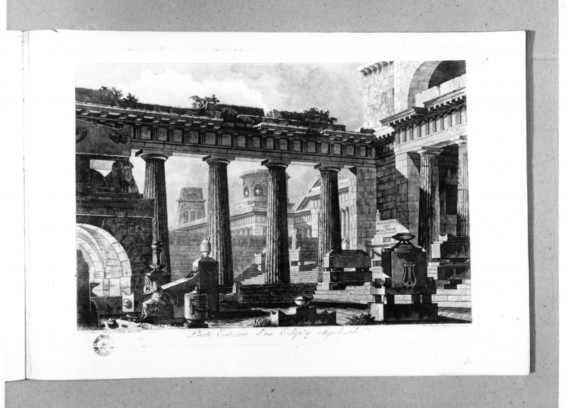 Tav.10: "Parte Esterna d'un Edifizio Sepolcrale.", F. Inghirami da L. Tasca, (Lastra: 258x385). Tutte le stampe mantengono i margini e sono state tirate direttamente sulla pagina ad eccezione della stampa