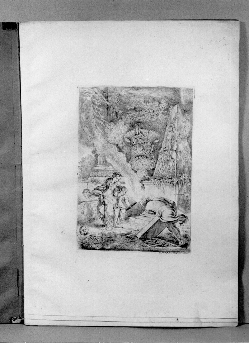 (c. 1): stampa incisa all’acquaforte ritoccata a bulino, terzo stato (Lastra: 303x250) con “Teseo ritrova la spada del padre” da Poussin, G. B. Castiglione, De Rossi, Roma, 1648.