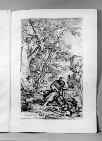 (c. 4): stampa incisa all’acquaforte (Lastra: 457x275), con “Diogene che getta via la scodella”, dall’omonimo quadro, S. Rosa, 1662.
