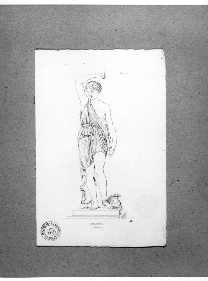 - Iscrizioni: in basso al centro: " AMAZONE/ AMAZZONE"; nel margine inferiore a destra:"48"; in alto a destra: "Tav. 22".