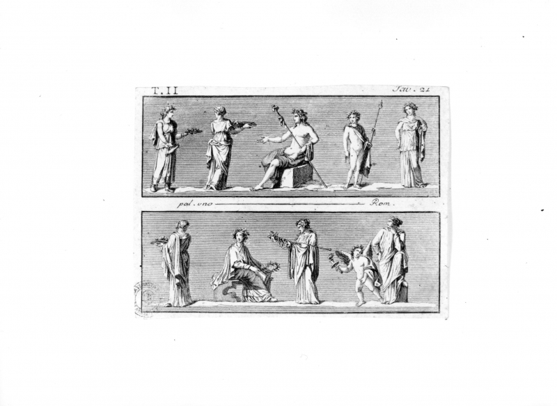 - Iscrizioni: al centro:"pal. uno Rom.", in alto a sinistra:"T. II"; in alto a destra:"Tav. 21".