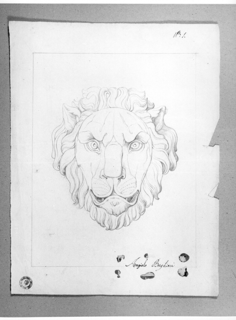 Il disegno si compone di due fogli giuntati orizzontalmente, ma il foglio superiore è interamente staccato. - Timbri