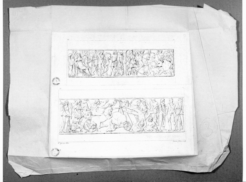 Due tavole di studi di fregi antichi con scene mitologiche (tavv. IV 91 e IV 97).