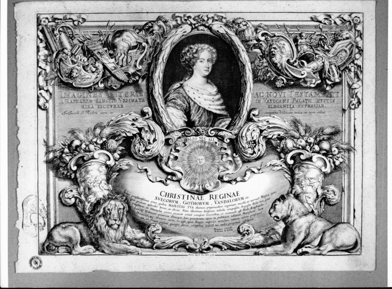 Frontespizio per il nuovo e vecchio Testamento (da Raffaello), dedicata a Cristina di Svezia.
