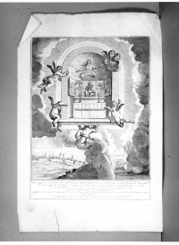 - Iscrizioni: in basso al centro: "Vera Effigie di N. Signora detta delle Vertighe presso la Nobil Terra do M.S. Savino ivi miracolosamentetrasportata/colla Sacra Cappella dell'agro d'Asciano nel 7 luglio MC; il quale prodigioso avvenimento troncò le contese/ di due Fratelli che minacciandosi a vicenda la vita se ne contrastavano il possesso/Dedicata al Merito sublime degl' Illustrissimi Signori/il Sig.re Cav. Fr. ZanobiCommendador Ricci, e Sign.re Ugone Marchese della Stufa, Patrizi Fiorentini Protettori della Festa del pre/sente anno 1730/Dai Sig.ri Deputati sopra la medesima Gr. Ant. Sozzini, M. Ant. Ristorelli, e Ant. Castori Poderetti.".