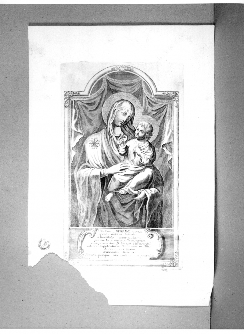 Iscrizioni: nel margine inferiore nel cartiglio: "Vetustam DEI PARAE iconem [...] A. MDCCLXXVIII venerantur Senenses [...]/auspicantur" - Timbri