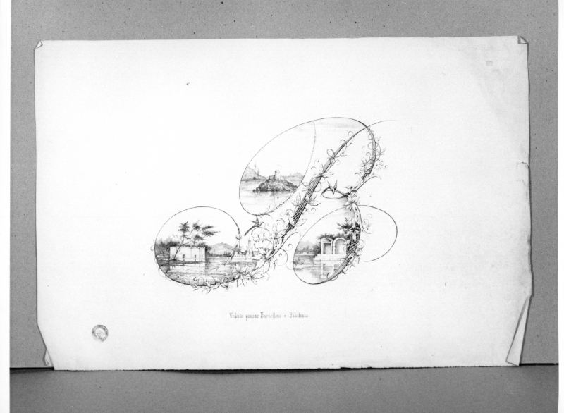 Monogramma fitomorfo B con vedute lacustri di Babilonia e Barcellona.