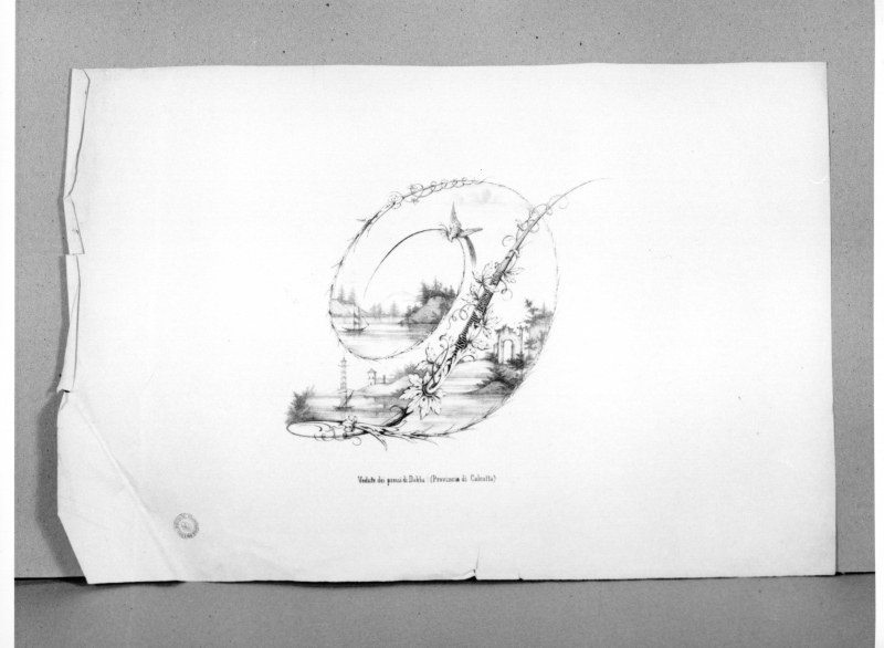 Monogramma fitomorfo D con vedute lacustri di Dakka (provincia di Calcutta).