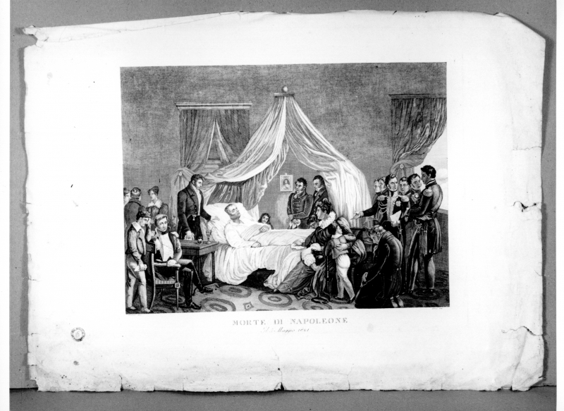 - Iscrizioni: in basso a sinistra:"Stenben dis"; in basso a destra: "Corsi inc.", in basso al centro:"MORTE DI NAPOLEONE/ Il 5 Maggio 1821".".