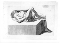 - Nudo virile sdraiato su plinto con gamba piegata.