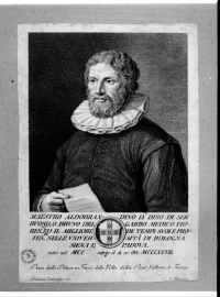 - Stemmi: in basso al centro, all'interno una croce e 5 stelle. Iscrizioni: in basso a sinistra: "Giuliano Traballesi"; in basso a destra: "C. Faucci sc."; in basso al centro:"MAESTRO ALDOBRANDINO D. DINO SER/BVUONO (...)/Preso dalle Pitture a Fresco delle Volte della Real Galleria di Firenze".