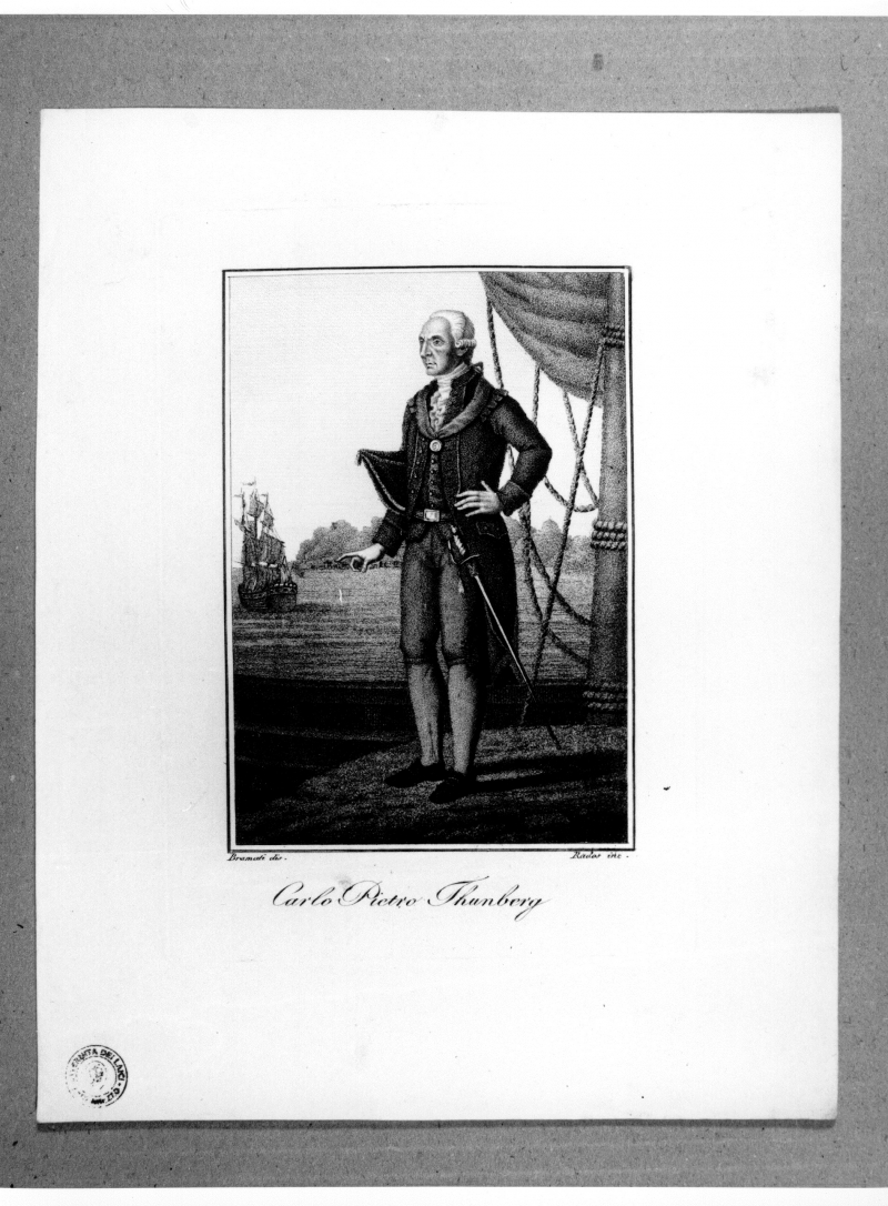 - Iscrizioni: in basso al centro:" Carlo Pietro Thunberg. "; in basso a destra:" Rados inc";in basso a sinistra: "Bramati dis". Stampa tratta da:"Serie di vite e ritratti de' famosi personaggi degli ultimi tempi. Opera dedicata a Sua Eccellenza il Signor conte Enrico di Bellegarde".