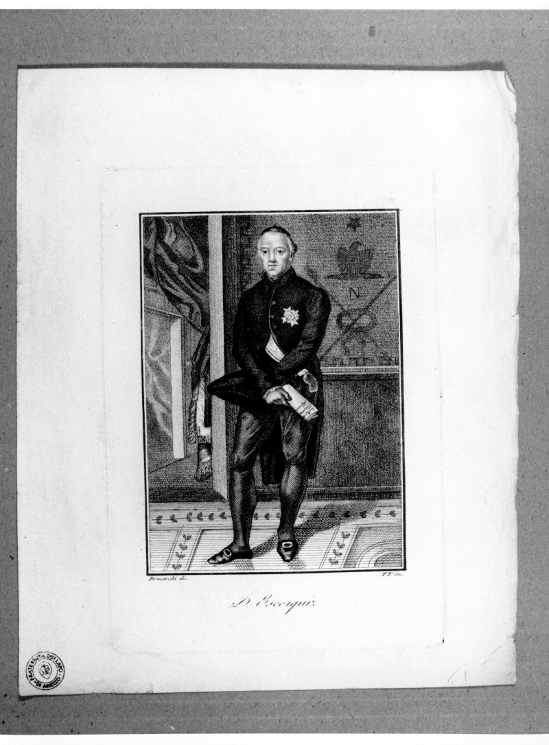 - Iscrizioni: in basso al centro:"D. Escoiquiz"; in basso a destra:" T.T. inc";in basso a sinistra: "Demarchi dis". Stampa tratta da:"Serie di vite e ritratti de' famosi personaggi degli ultimi tempi. Opera dedicata a Sua Eccellenza il Signor conte Enrico di Bellegarde";.