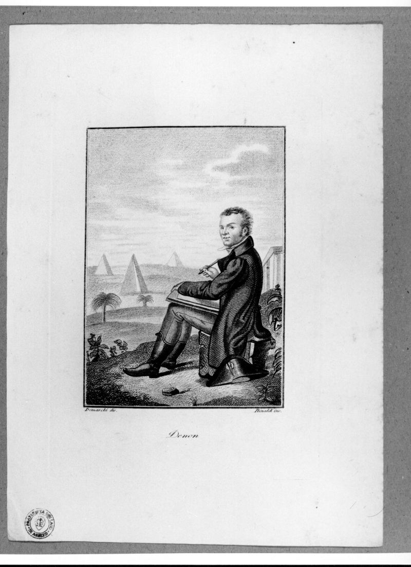 - Iscrizioni: in basso al centro:"Denon"; in basso a destra:"Demarchi dis."; in basso a sinistra:"Rinaldi inc.".